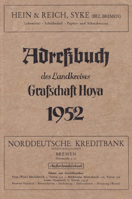 Adressbuch Amt Thedinghausen, Riede, Felde etc. Weiterlesen »