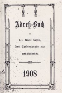 Adressbücher sind eine hervorragende Quelle für die Historiker und Familienforscher. In den Büchern sind die Einwohner der Städte und Ortschaften verzeichnet. Fast zu jeder Person ist die Berufsbezeichnung angegeben. Sie geben einen Überblick über Handwerk, Gewerbe und Behörden. Die enthaltenen Werbeanzeigen bieten heute spannende Einblicke in die Geschichte und das kulturelle Leben. Nachstehend finden Sie Adressbücher aus dem heutigen Landkreis Verden. Der Kreis Verden wurde am 1. April 1885 aus der Stadt und dem Amt Verden gebildet. Zum 01. Oktober 1932 wurde aus dem Kreis Verden, dem Kreis Achim sowie der Gemeinde Oiste des Kreises Hoya der neue Landkreis Verden mit Kreissitz in Verden gebildet. Später gab es noch folgende Gebietsveränderungen: