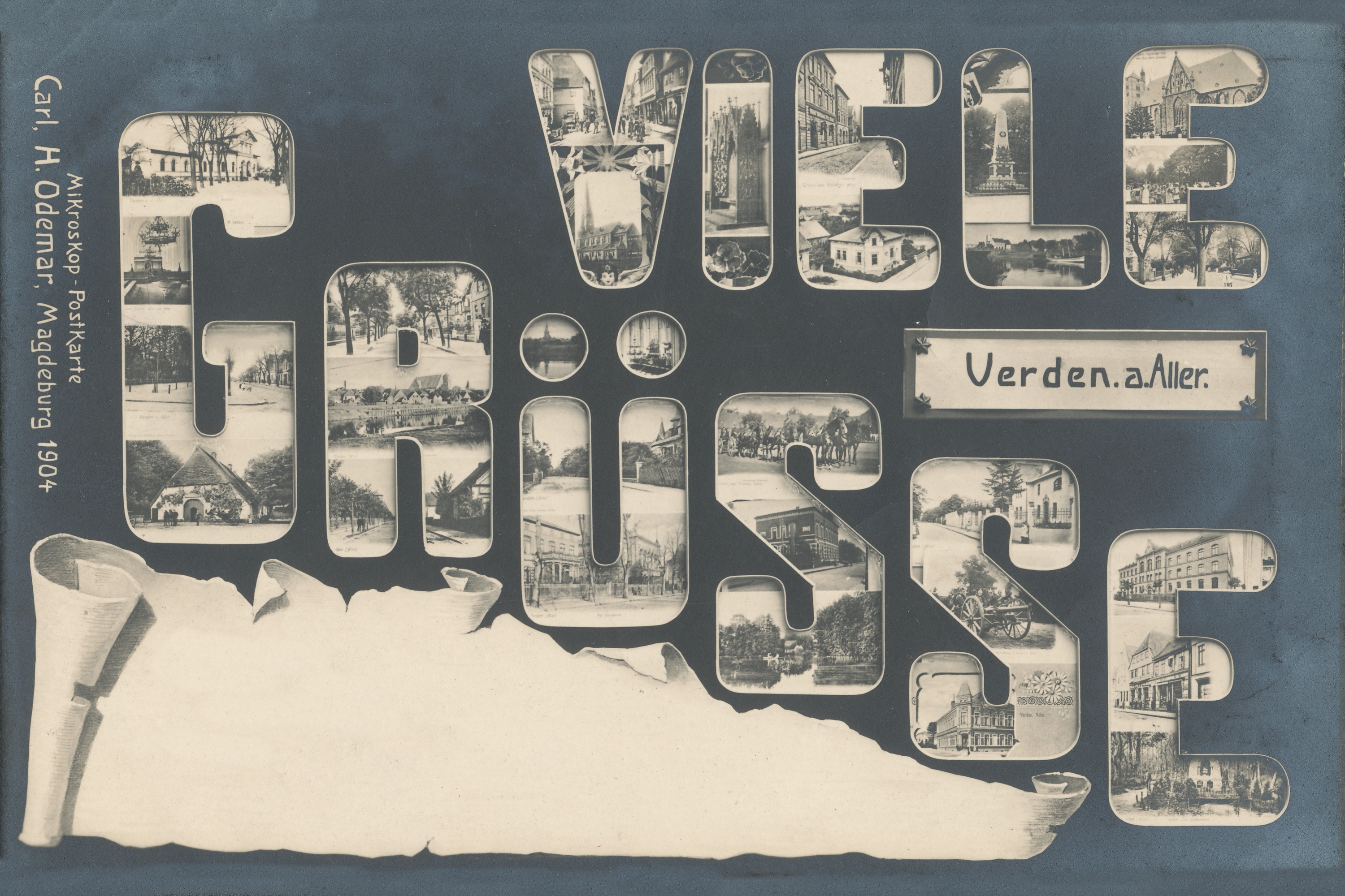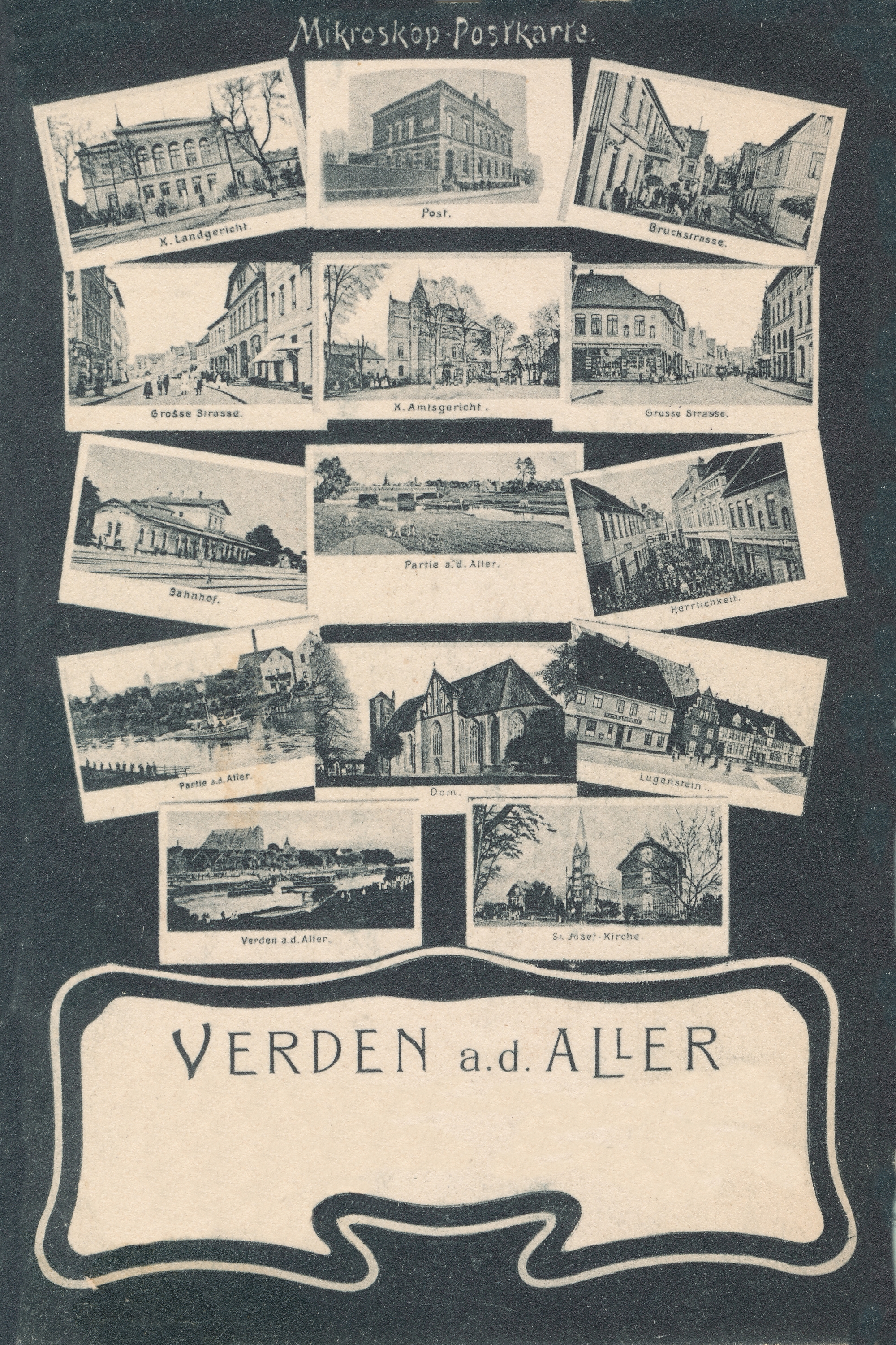 Diese Ansichtskarten mit den mikroskopisch kleinen Motiven der wichtigsten Sehenswürdigkeiten waren eine Modeerscheinung Anfang der 20. Jahrhunderts.