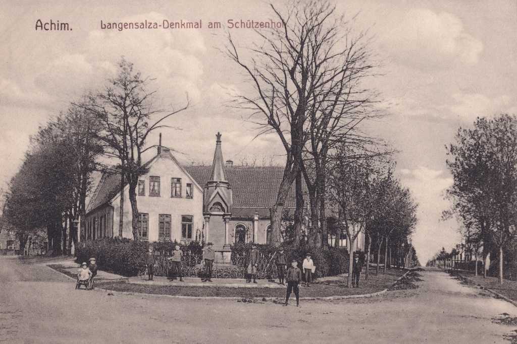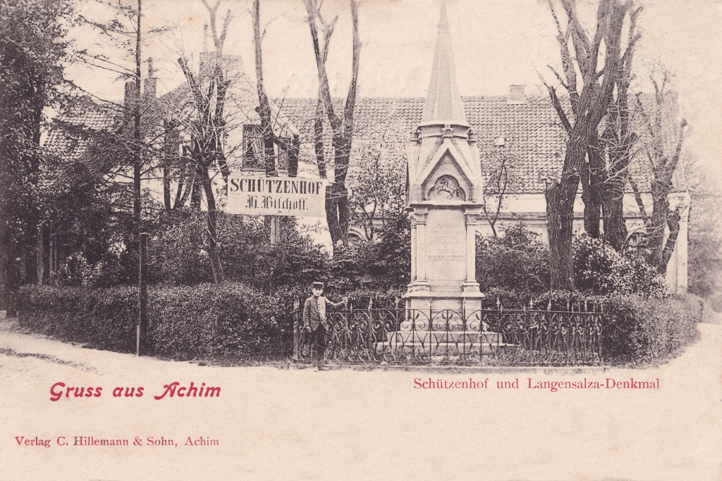 Das Denkmal erinnert an die Soldaten, die in der Schlacht bei Langensalza am 27. Juni 1866 gefallen sind. Es stand vor dem Schützenhof (heute KASCH) und wurde im Rahmen der Stadtsanierung versetzt und steht heute im Rathausgarten. Die Inschrift am Denkmal lautet: “Zum Andenken an die braven Hannoveraner aus der Landdrostei Stade, welche am 27. Juni 1866 in der Schlacht bei Langensalza für die Unabhängigkeit ihres Vaterlandes und ihr angestammtes Königshaus den Heldentod starben.”