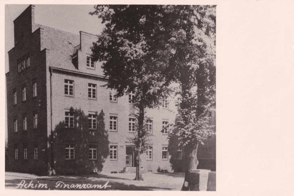Es handelte sich um das Finanzamt des ehemaligen Kreises Achim. Das Gebäude wurde 1927 fertiggestellt. Nach 1945 erfolgten mehrere Besitzerwechsel. Seit 1973 beherbergt es eine Kindertagesstätte.