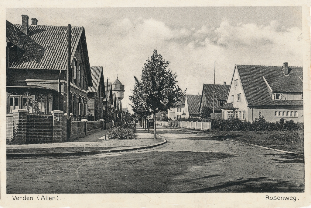 “Auf dem Rosenweg” ist ein überlieferter Flurname, der schon 1616 gebräuchlich war, als das Domkapitel dieses Flurstück im Besitz hatte. Rose war im Mittelalter die Bezeichnung für eine Stute. Es liegt also nahe, das dort eine Pferdekoppel gewesen ist. Das erste Haus am Rosenweg wurde 1869 erbaut.